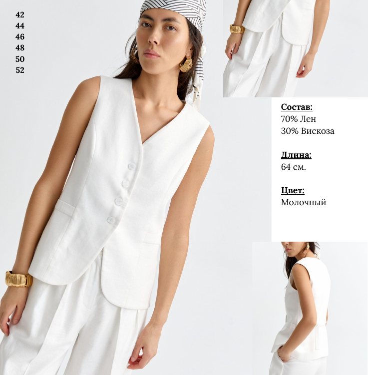 пуговицы. По переду застежка, декоративные листочки. Изделие на подкладе из тонкого хлопка.Лен-натуральная ткань,обладающая даже лечебным свойством! Дуэт из хлопка и льна всегда ценились в одежде.Прохлада, легкость и комфорт всегда дарят хорошее настроение,уверенность и способствуют прекрасному образу.В сочетании с аксессуарами это создает законченный гармоничный образ.Эта универсальная модель подчеркнет вашу индивидуальность и станет незаменимой частью гардероба. Идеально подходит как для повседневных образов, так и для мероприятий с непринужденной атмосферой. Стильная деталь – декоративные элементы придают изделию особый шарм и оригинальность. Носите с удовольствием, ощущая себя уверенно и комфортно каждый день!